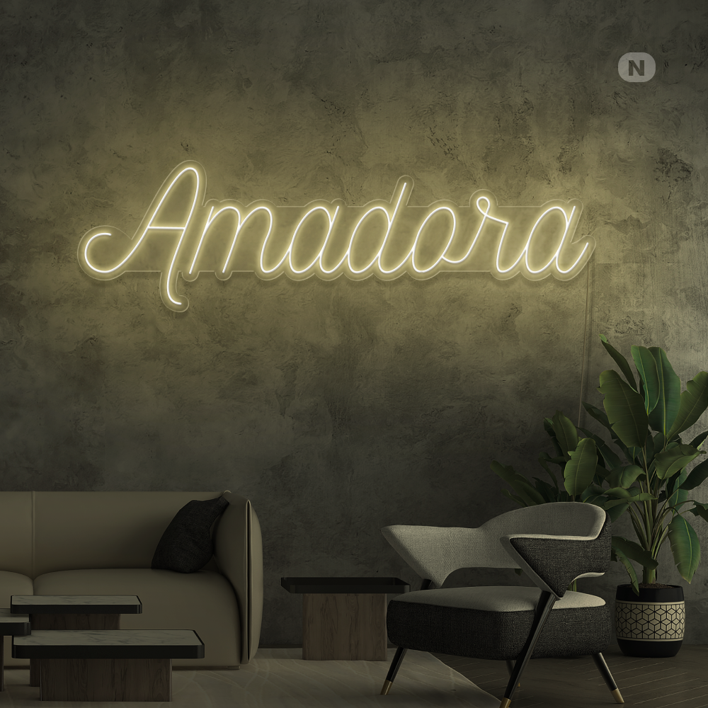 Experimente a magia de Amadora em seu espaço com nosso Letreiro de néon. Deixe-se inspirar pela atmosfera vibrante que ele cria e adicione um toque de originalidade à sua decoração. Compre agora e ilumine seu ambiente com a beleza única do nosso Letreiro de néon