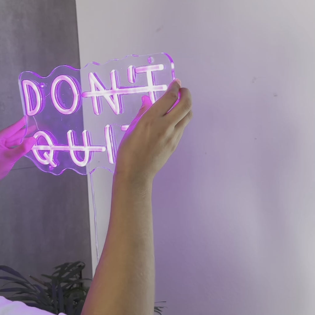 Ilumine sua vida com uma mensagem motivacional. O Sinal de Néon "Don't Quit" combina palavras inspiradoras com um brilho envolvente, transformando qualquer ambiente com cores vibrantes e uma energia positiva. Este Sinal de Néon é ideal para criar um refúgio criativo, infundido com luz brilhante e boas vibrações.