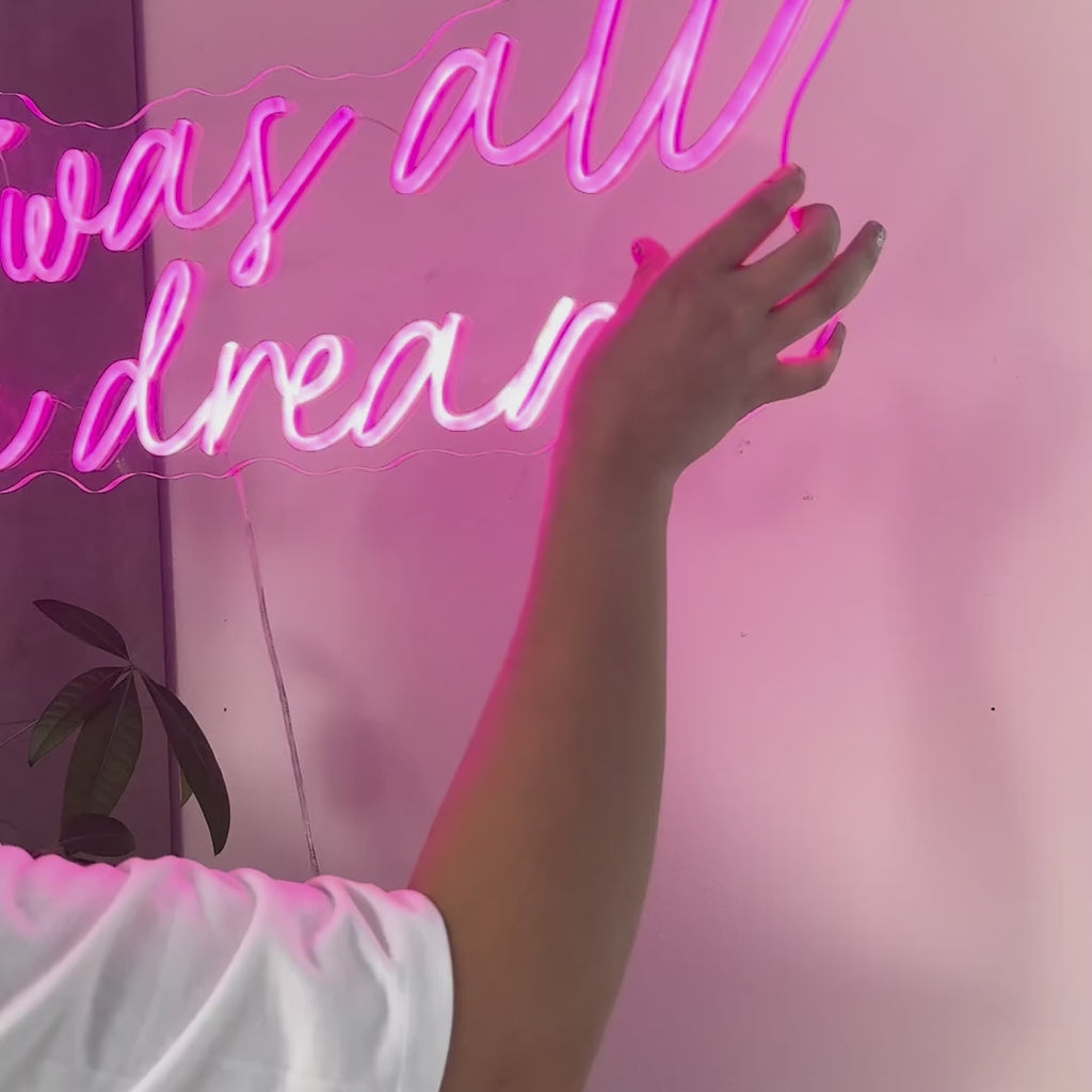 Entre no mundo da imaginação com nosso encantador Sinal de néon "It was all a dream"! Deixe sua criatividade fluir e imerja qualquer espaço em uma atmosfera dos sonhos. Seja para decorar seu quarto, escritório, bar ou estúdio criativo, nossa iluminação de néon acrescenta um toque de magia e encanto a qualquer lugar.