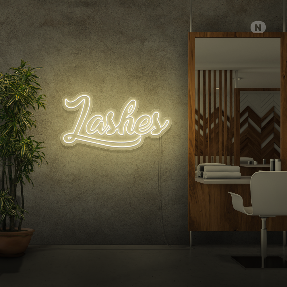 Descubra o encantamento das belas pestanas com nossa iluminação de néon 'Lashes'. Esta deslumbrante criação em LED traz à vida a beleza e a atração magnética de pestanas longas e volumosas. Com suas luzes brilhantes e brilho sedutor, este sinal de néon cria uma atmosfera de glamour e elegância que acentua a beleza dos olhos.