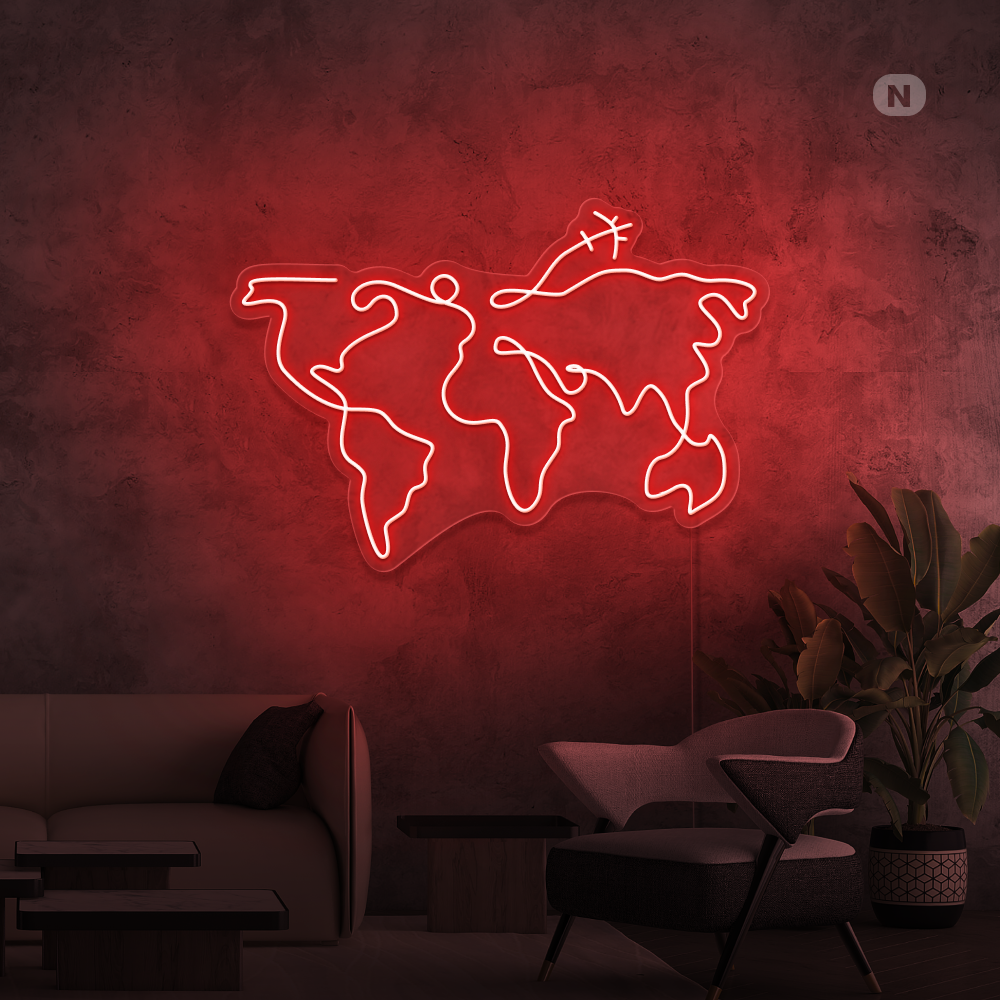 Deixe seu espaço refletir a beleza do mundo com este Sinal de néon. Enriqueça seu interior com um toque de inspiração global, iluminado por uma luz de néon que é tão brilhante e versátil quanto o próprio mundo. Compre agora e traga o mundo para dentro de sua casa!
