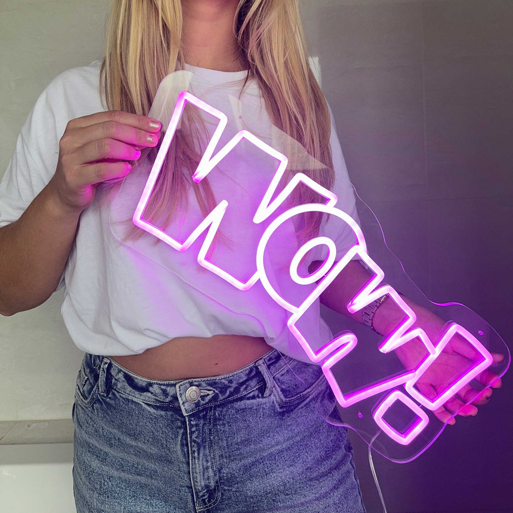 Nossa iluminação Wow! combina o charme do néon com a durabilidade e eficiência energética da tecnologia LED. Ela não apenas oferece uma bela experiência visual, mas também garante um desempenho duradouro sem custos elevados de energia. Com seu visual versátil e moderno, o Sinal de néon Wow! é a escolha ideal para quem busca uma solução de iluminação marcante e consciente do meio ambiente.